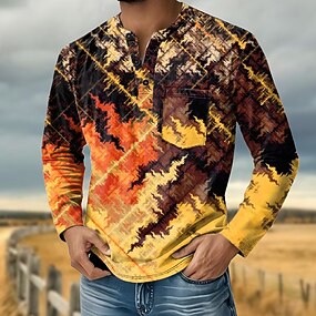 Herr Grafisk Lutning Waffle Henley Shirt Vardaglig stil Klassisk Stil Långärmad 3D-tryck Mode Designer Grundläggande Dagligen Utomhus Vår & Höst Blå Orange Brun Grå Henley Henley T-shirt