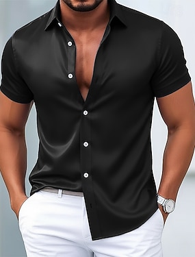 Herr Skjorta Sidenskjorta i satin Ensfärgat Dagligen Utomhus Ljusblå Svart Vit Vin Kortärmad Nedvikt Sommar Vår Kläder Slät