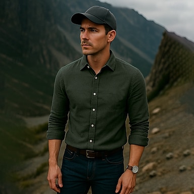 Herr Skjorta Blå Armégrön Beige Långärmad Ensfärgat Rullad krage Utomhus Casual Knappar Kläder Dagligen Ledigt vardag Fritid