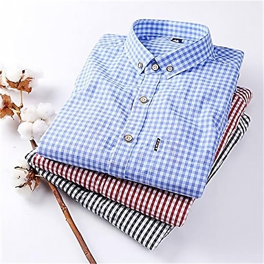 Herr Skjorta Rutig skjorta Button Down skjorta Skjorta med krage Pläd / Rutig Bröllop Arbete B C D E Långärmad Nedvikt Vår & Höst Kläder Button-Down