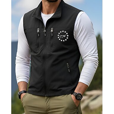 Herr Väst Gilet Fiskeväst Utomhus Dagligen Mode Ledigt Vår Höst Dragkedja Ficka Mönster Polyester Bekväm Stjärna Nummer Enkelknäppt med Ett Knapphål Hög krage Normal Svart Vin Armégrön Beige Väst