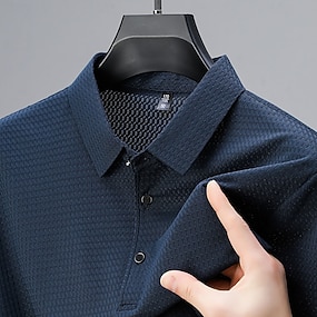 Herr Strukturerad Våffelstickad pikétröja Ledigt Företag Klassisk Kortärmad Mode Modern Ensfärgat Strukturerad Snabbtorkande Knappar Sommar Vår Normal Blå Svart Vit Marinblå Grön Strukturerad