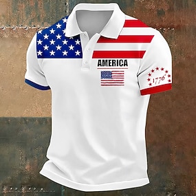 4 juli 2026 250:e Herr Amerikanska amerikanska flaggan Polo Kortärmad Polotröjor Kavajslag Ledigt Fritids- Dagliga kläder Festival outfit 3D-utskrift Knappar Vår Blå Vit Rubinrött