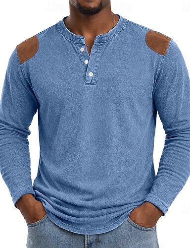 Herr Deminskjorta Tvätta skjorta i 100 % bomull Henley Top Kortärmad Vintage Bedrövad Ledigt Hem Gata Höst vinter Sommar Vår Svart Rosa ljusgrön Grå Ljusblå Hög krage Henley Henley T-shirt