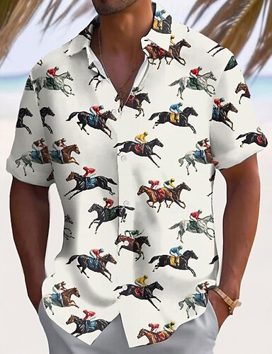 Kentucky Derby Herr Randig Hästkapplöpning Skjorta Sommarskjorta Knapp upp skjorta Kortärmad Vintage retro Helgdag Sommar Vår Nedvikt 3D-utskrift krage skjortor Blå Blågrön Grön Ljusblå