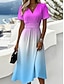 Dam Midiklänning Solklänning A linjeklänning Semester Ledigt Boho Helgdag Normal Grafisk Färggradient Ärmlös V-hals Blå Purpur Orange Grön Sommar Vår