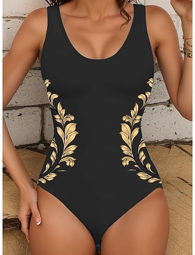 Kvinnors baddräkter En bit Monokini baddräkt Rygglös Magekontroll Hög midja Semester Strandkläder Blommig Grafisk U-hals ärmlös badkläder