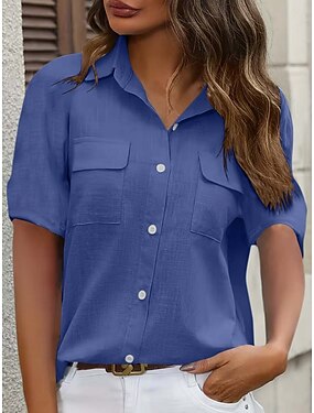 Dam Skjorta Konstbomullslinne Lappverk Ensfärgat Vintage Stylish Klassisk Kortärmad Tröjkrage Vanliga toppar Dagligen Helgdag Utekväll Svart Vit Rubinrött Marinblå Grön Sommar Vår