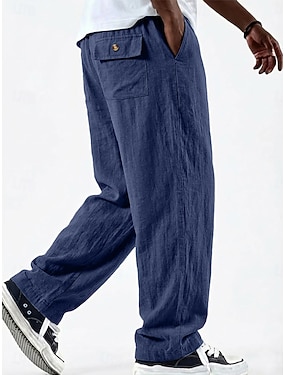 Herr Linne Byxor Långbyxor Sommarbyxor Säckiga byxor Ficka Elastisk midja Rakt ben Ensfärgat Slät Komfort Bekväm Fullängd Ledigt Dagligen Helgdag Semester Mode Lös passning Blå Svart Oelastisk