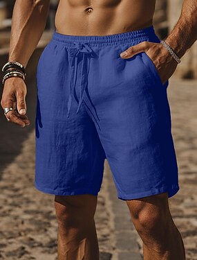 Herr Shorts Linne Shorts Sommarshorts Beach Shorts Säckiga Shorts Snörning Elastisk midja Slät Komfort Andningsfunktion Knelängd Ledigt Dagligen Utomhus Klassisk Stil Retro / vintage Blå Svart
