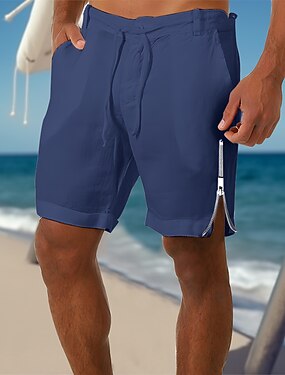 Herr Shorts Linne Shorts Sommarshorts Beach Shorts Snörning Ficka Zip Ben Slät Komfort Andningsfunktion Kort Ledigt Dagligen Helgdag Mode Klassisk Stil Vit Marinblå
