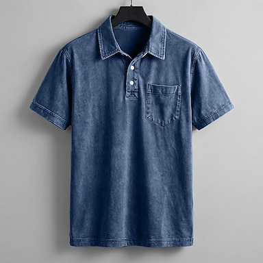Herr Pikétröjor Tvätta skjorta i 100 % bomull Ledigt Helgdag Kavajslag Kortärmad Mode Grundläggande Slät Årgång Bedrövad Sommar Vår Blå Svart Marinblå Brun Grön Armégrön Pikétröjor