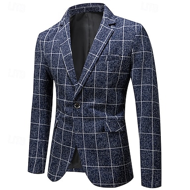 Herr Kavaj Företag Cocktailfest Bröllopsfest Mode Ledigt Vår & Höst Polyester Rutig Ficka Knappar Bekväm Enkelknäppt Blazer Svart Vit Marinblå Grå