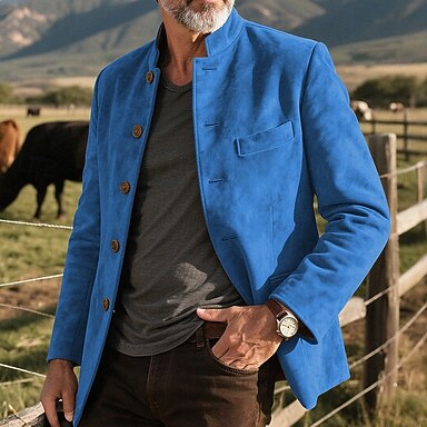 Herr Vardaglig jacka Jacka i fuskmocka Semester Dagligen Ficka Vår Höst Slät Mode Klassisk Hög krage Normal Ljus kaki Svart Marinblå Kaki Armégrön Jacka