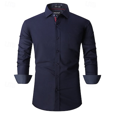 Herr Skjorta Knapp upp skjorta Slät Bröllop Fest Svart Vit Rosa Vin Långärmad Kavajslag Vår Höst Kläder Ficka