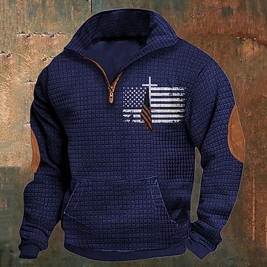 Herr Tröja Våffeltröja Kvartströja med dragkedja Svart Marinblå Kaki Ljusgrå Grå Halv dragkedja Landsflagga Lappverk Ribbad Framficka Sport & Utomhus Dagligen Helgdag Polyester Streetwear