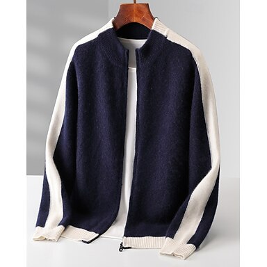 herr premium cardigan i ren ull, kashmir, färgblock, klassisk stickning, dragkedja, mjuk, varm, andningsbar