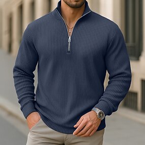 Herr Våffelpikétröja Quarter Zip Polo Dagligen Helgdag Fjärdedels blixtlås Långärmad Mode Modern Slät Framficka Vår & Höst Normal Svart Vit Marinblå Ljusgrå Beige Våffelpikétröja