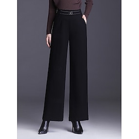 Dam Långbyxor Kostymbyxor Elegant Vintage Mode Fullängd Hög midja Ensfärgat Slät Snörning Ficka Rakt ben Komfort Varm Mjuk Microelastisk Streetwear Kontor Arbete Grå Svart Sommar Vår Höst Normal