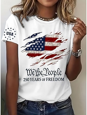 Självständighetsdagen Amerikansk Anniversär Patriotisk Kvinnors T-shirt Grafisk Flagga Bokstav Vintage Mode Stilren Kortärmad Crew Neck Daglig Helgtryck Blå Svart Vit Röd Sommar Vår