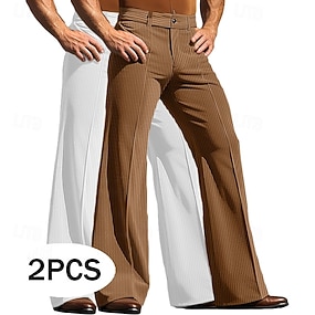 Herr Långbyxor Kostymbyxor Manchesterbyxor Bell Botten Flared byxor Ficka Flerpack Slät Komfort Fullängd Utomhus Företag Dagligen Mode Elegant och modernt Brun+Grön Vit + Grön Microelastisk