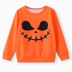 Halloween Pojkar 3D Grafisk Tecknat Pumpa Tröja Långärmad Vår Höst Mode Grundläggande Polyester Barn 4-12 år Rund hals Utomhus Ledigt Dagligen Normal