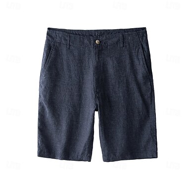 Herr Linne Shorts Slät Knelängd Utomhus Kontor Dagligen Semester Etnisk Stil Mörkblå Oelastisk