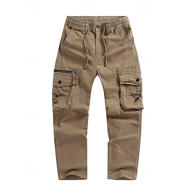 Herr Militärbyxor Cargo byxor Manchesterbyxor Säckiga byxor Casual byxor Elastisk midja Flera fickor Rakt ben Slät Komfort Andningsfunktion Fullängd Utomhus Ledigt Dagligen Semester Mode Brun + svart