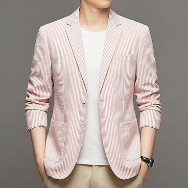 Herr Kavajjacka Stängande krage Mode Kontor Randig Blazer Seersucker-kostymer Rodnande Rosa Plusstorlekar