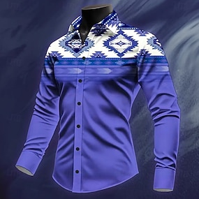 Herr Aztek Etnisk Indisk kultur Skjorta Västerländsk skjorta Cowboyskjorta Långärmad Vintage retro Utomhus Semester Vår Höst Nedvikt 3D-utskrift Linne som skjorta Ljuslila Purpur Orange Grön Mörkblå