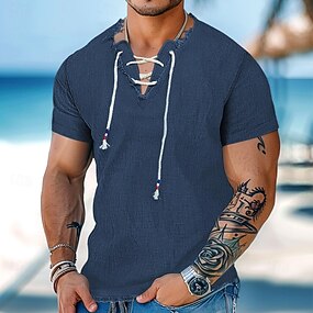 Herr Skjorta linneskjorta Bandkrageskjorta Popover skjorta Sommarskjorta Strandskjorta Slät Semester Curise Svart Vit Rodnande Rosa Grön Kortärmad Henley Sommar Kläder