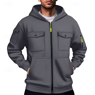 Herr Huvtröja Huvtröja med dragkedja Huvtröja i fleece Taktisk hoodie Svart Marinblå Kaki Ljusgrå Mörkgrå Huva Slät Dragkedja Ficka Sport & Utomhus Ledigt Dagligen Streetwear Häftig Sportkläder Vår
