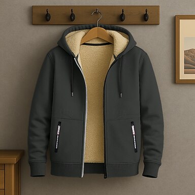 Herr Hoodie-tröja med dragkedja Sweat Jacka Sherpa Svart Vit Vin Armégrön Marinblå Huva Ensfärgat Dragkedja Häftig Grundläggande Ledigt Vinter Kläder Pull Tröjor Långärmad