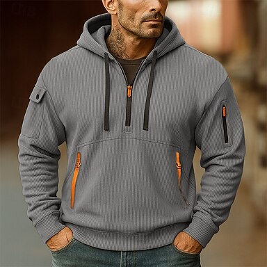 Herr Huvtröja Manchestertyg Huvtröja med dragkedja i Quarter Huvtröja i fleece Taktisk hoodie Svart Vit Rubinrött Blå Kaki Huva Slät Dragkedja Sport & Utomhus Ledigt Dagligen Streetwear Häftig