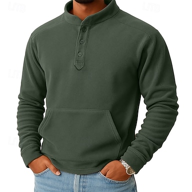 Herr Tröja Fleecetröja Luvtröja med knapp Svart Mörkgrön Kaki Kaffe Grå Henley Slät Lappverk Känguruficka Sport & Utomhus Ledigt Dagligen Streetwear Häftig Sportkläder Höst Vinter Kläder Pull Tröjor