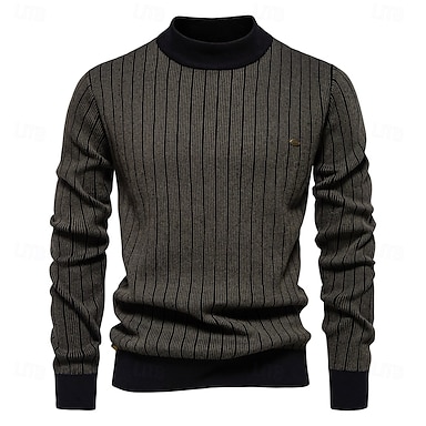 Herr Tröja Sticka Normal Blandad färg Ränder och pläd Runda Ledigt / vardag Kläder Höst vinter Mörk marin Mörkgrön S M L