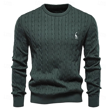 Herr Pullover tröja Sticka Broderi Ensfärgat Rund hals Stickat Elegant Jul Utomhus Kläder Höst Vinter Svart Vit S M L