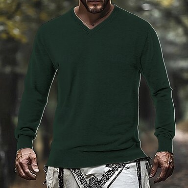 Herr Pullover tröja Stickad tröja Ribbad Sticka Vanliga toppar Stickat Slät V-hals Mode Grundläggande Semester Dagliga kläder Kläder Höst Vinter Kamel Svart S M L