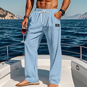 Herr Linne Byxor Långbyxor Casual byxor Sommarbyxor Snörning Elastisk midja Slät Komfort Andningsfunktion Fullängd Ledigt Dagligen Utomhus Semester Mode Blå Svart Oelastisk