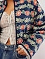 Dam Vardaglig jacka Vindtät Håller värmen Ficka Färgblock Öppen front Modern Blommig Ledigt Dagligen Ledigt / vardag Kort Rund halsringning Normal Långärmad Ytterkläder Svart Vit Rubinrött Höst