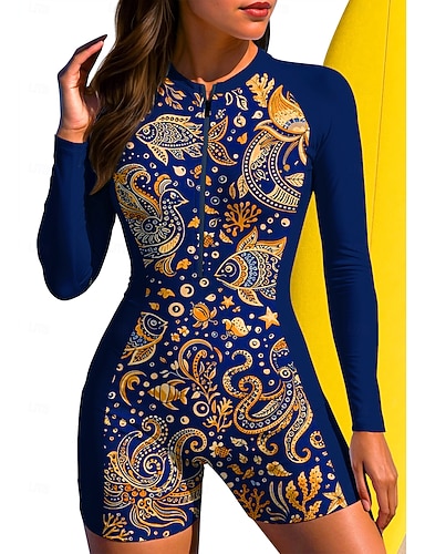 Dam Rash-guards Surfdräkt i ett stycke Baddräkt Blommig Tropisk Färgblockerande Dragkedja med inbyggd BH Avtagbar dyna UV Solskydd UPF50+ Ultralätt (UL) Långärmad Badkläder Hudsjukdomsvakt Surfing