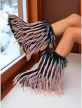 Dammode med pälsiga platåstövlar - rosa och svarta fluffiga statement-skor för streetstyle, vinterkläder, rave-looker och trendiga festivalkläder
