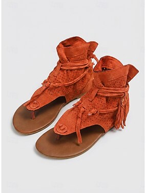 röda gladiatorsandaler med fransar för kvinnor – bohemiska platta sandaler med snörning för musikfestivaler och utomhussemesterkläder