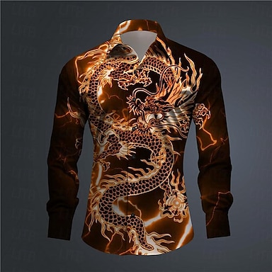 Herr Kostymer Knapp Upp Skjorta Långärmad Mörk Festkväll Kläder Affär Daglig Höst Vinter Vår Sommar Skjorta Krage Knapp Upp 3D Tryck Röd Lila Orange Grön Mörk