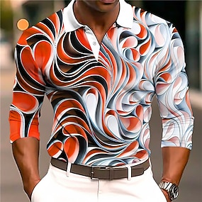 Herr Grafisk Pikétröjor Golftröja Långärmad Polotröjor Skjortor med krage Ledigt Semesterkläder Rave Wear Festkläder 3D-utskrift Knappar Höst vinter Blå Orange