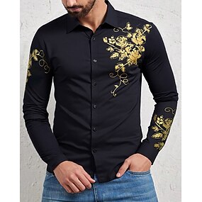 Herr Skjorta Sommarskjorta Casual skjorta Strandskjorta Knapp upp skjorta Svart Långärmad Blommig Kavajslag Semester Hawaiisk Bronzing Kläder Polyester Mode Ledigt Bekväm