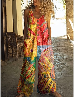 Dam Jumpsuits Aktiv Grafisk Ärmlös Rak Dagligen Semester Lös passning Gul Rodnande Rosa Orange Sommar