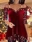 Dam Midiklänning Röd julklänning Balklänning Festklänning Mode Modern Jul Fest Kvällsfest Normal Färgblock Långärmad Över axeln Rubinrött Höst Vinter