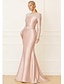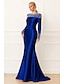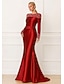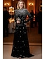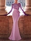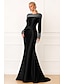 Sjöjungfru trumpet Svepsläp Balklänningar Kvälls klänningar Balklänning Formell klädsel Elegant glittrande Kändis Stil Långärmad Över axeln Trädgårdsfest Bröllop Sammet med Pärldetaljer