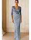 Sjöjungfru trumpet Golvlång Pärlbroderad Formell klädsel Klänning för brudens mor Kvälls klänningar Elegant Kändis Stil 3/4 ärm V-hals Trädgårdsfest Bröllop Satäng med Veckad Pärldetaljer Paljett